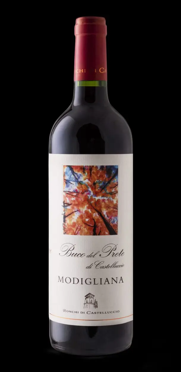 100% Sangiovese Grosso (Romagna clones). The Buco del Prete vineyard was planted in 1989 at 300 metres (the lowest), facing east-northeast and surrounded by woodland. Hand harvest in the last week of September and the first week of October. Spontaneous fermentation in stainless steel with 25 days of maceration on the skins. Ageing in large 3,000-litre French oak barrels, low toast. Then, a further eighteen months in the bottle. Modigliana is a subzone of Romagna DOC.